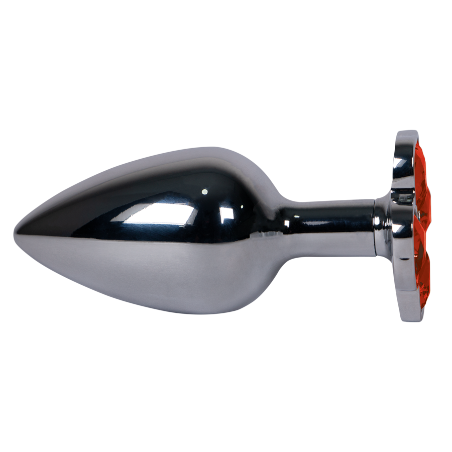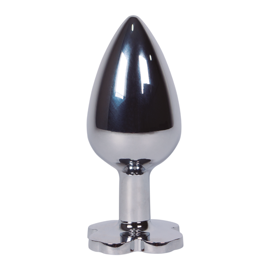 Plug metálico con base en forma de flor, sus pétalos son unas pequeñas joyas en forma de corazón.