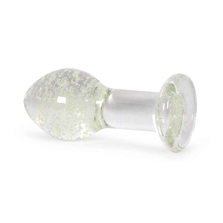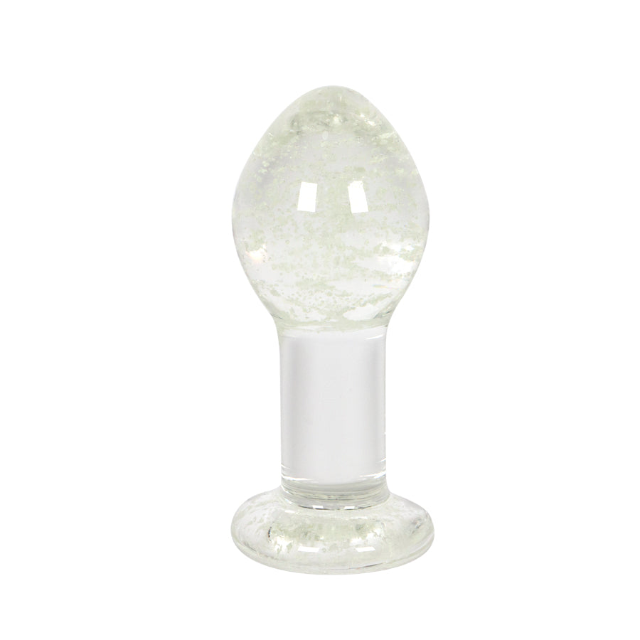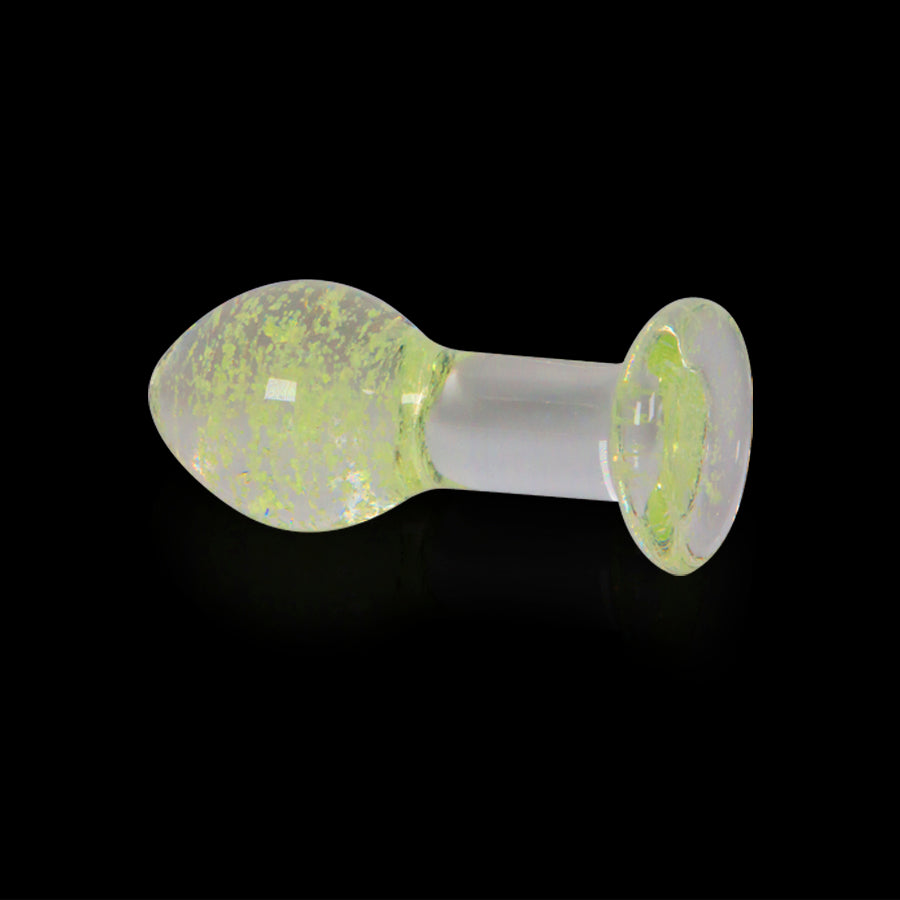 Plug anal grueso con partículas en su interior que brillan en la oscuridad.