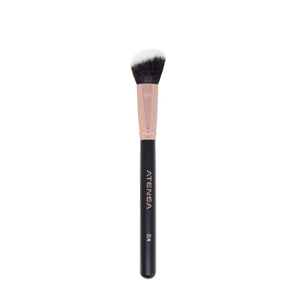 Brocha diagonal, esta brocha es ideal para contornear el rostro, también sirve para aplicar el rubor.