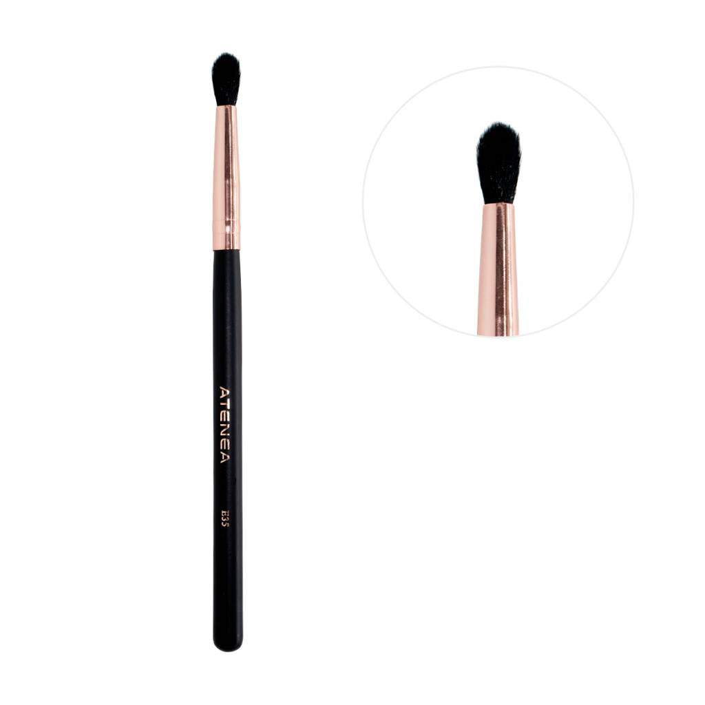 Brocha difuminar mediana, sirve para difuminar sombras en la cuenca del ojo, su forma nos ayuda a quitar rayas creadas por transiciones.