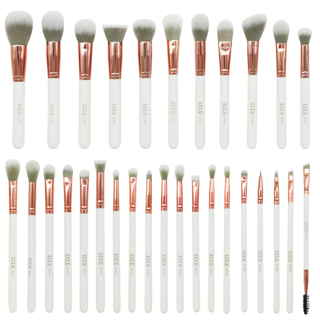 KIT STONE by Lula cuenta con 30 brochas, 12 brochas para rostro y 18 brochas para ojos.