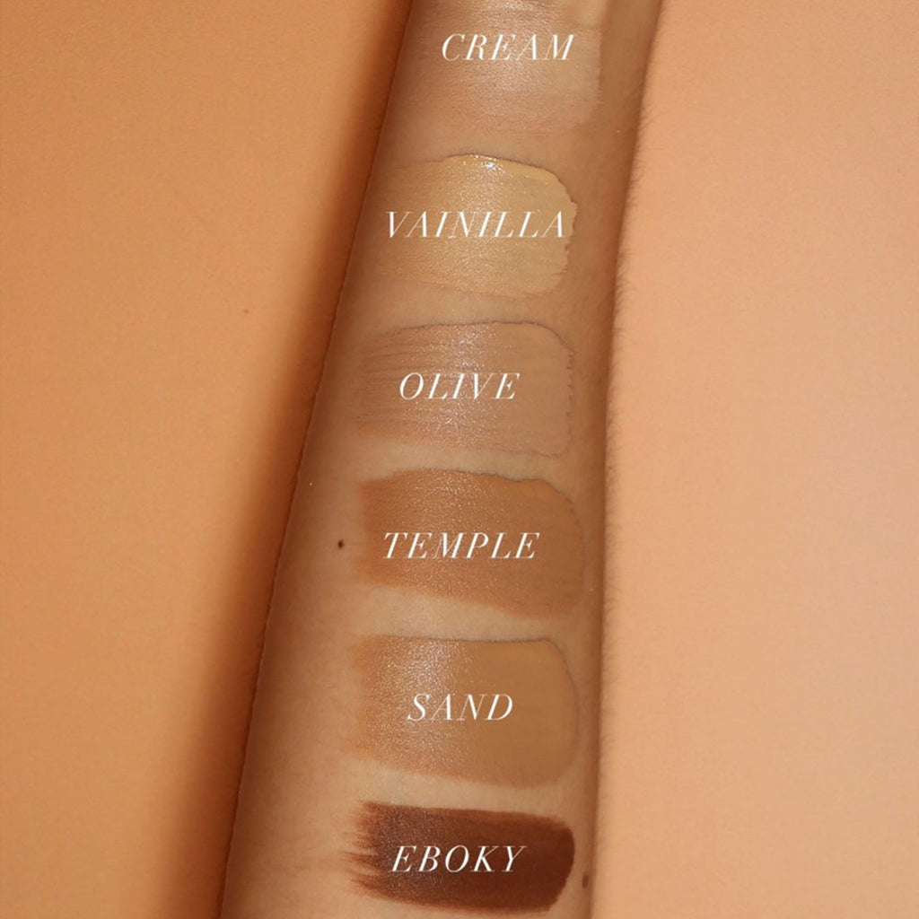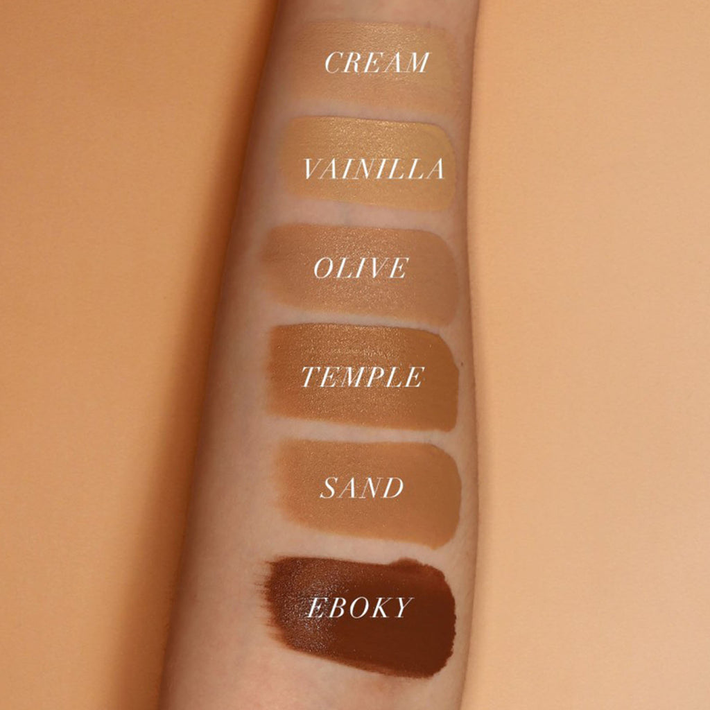 Su cobertura es media alta y su acabado es semi matte. Puedes construir la base a mayor cantidad mayor cobertura. Ideal para todo tipo de piel.