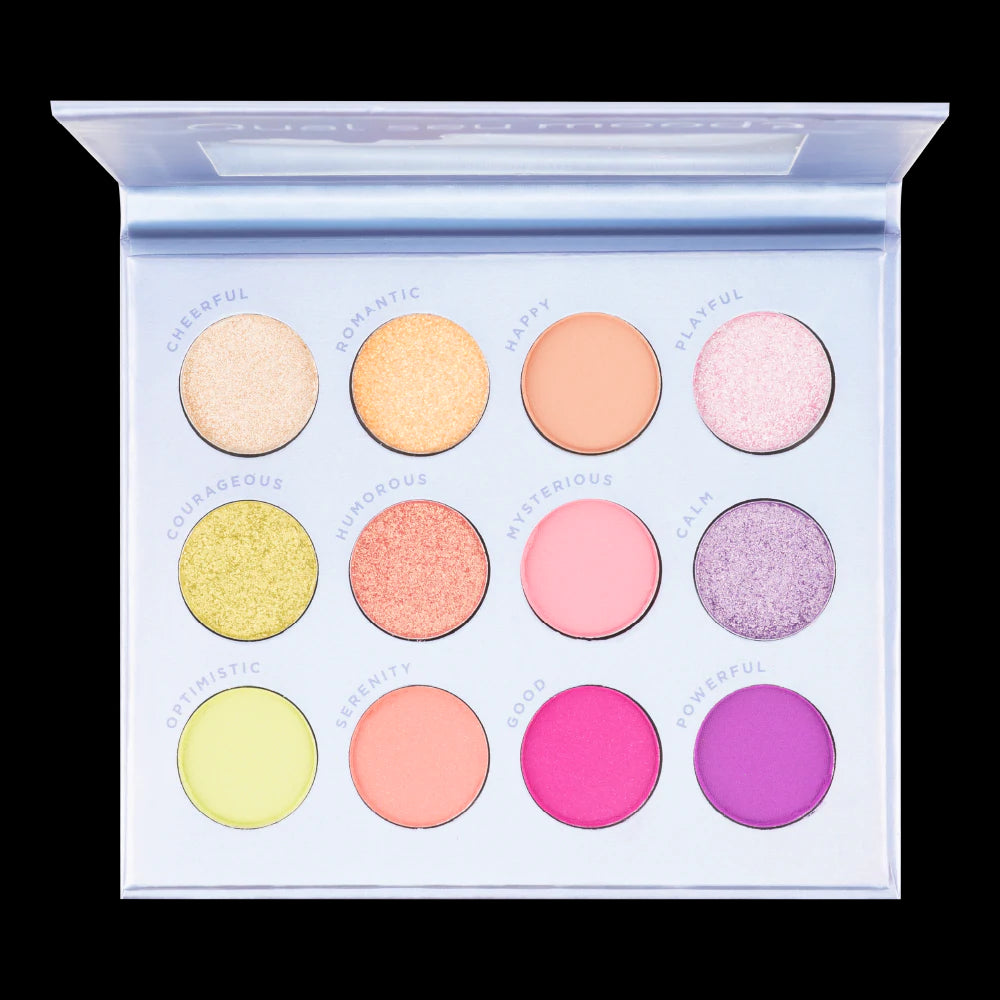 La paleta de sombras “Feels Mood” viene con 12 llamativos y vibrantes colores para que descubras el Mood que más te guste y más te haga brillar.