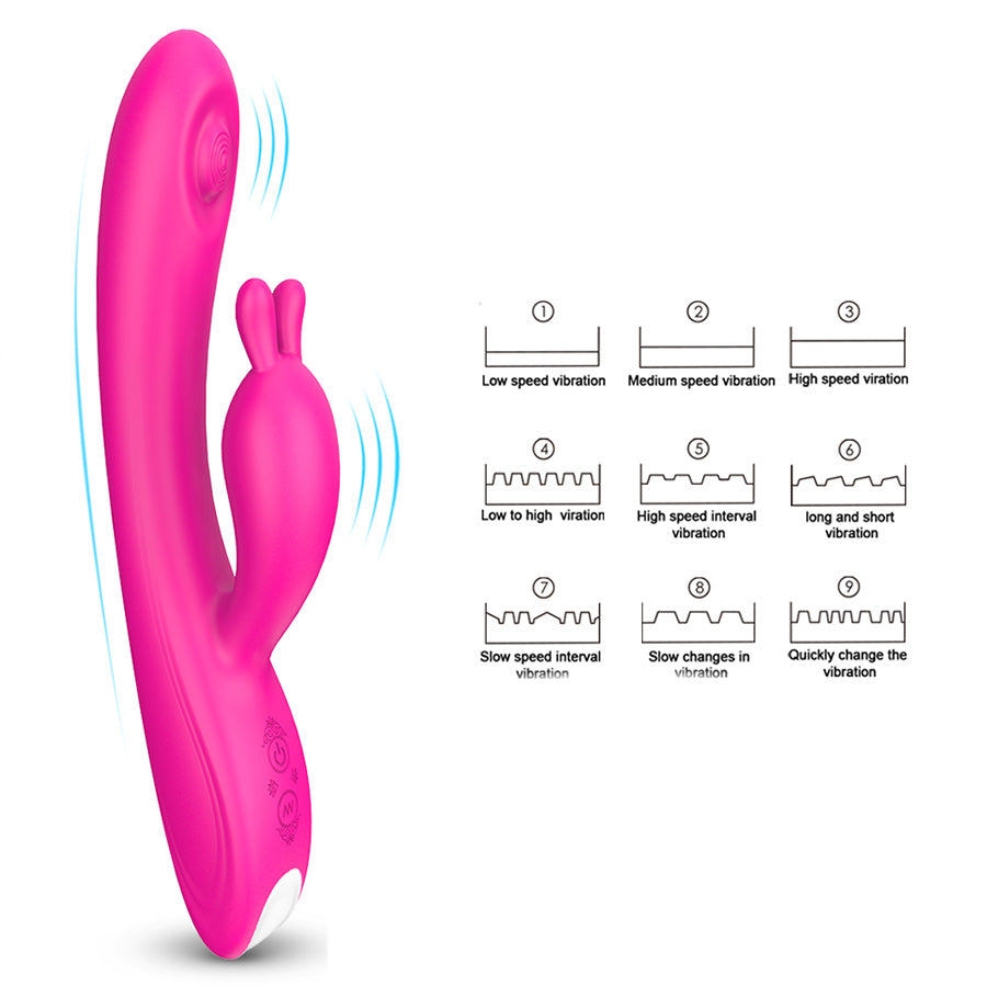 Su estimulador clitorial son dos potentes orejas graduales a  9 ritmos de vibración para una simulación de sexo oral placentera.