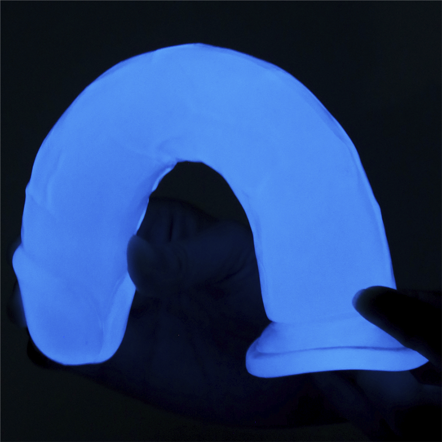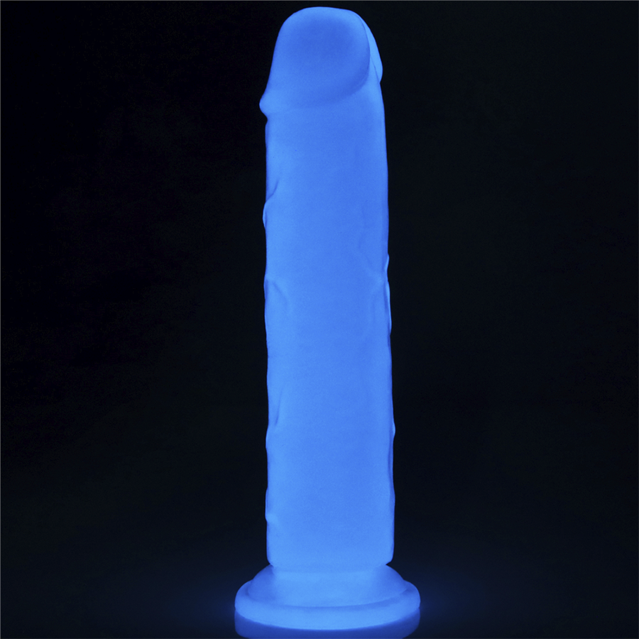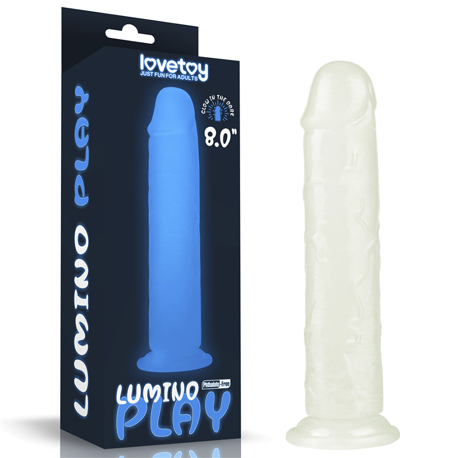 Lumino play es un dildo que te ofrece mucha diversión y emociones después de que se apagan las luces. Con una infusión de polvo brillante no tóxico, emite una colorida luz azul visible después del anochecer.