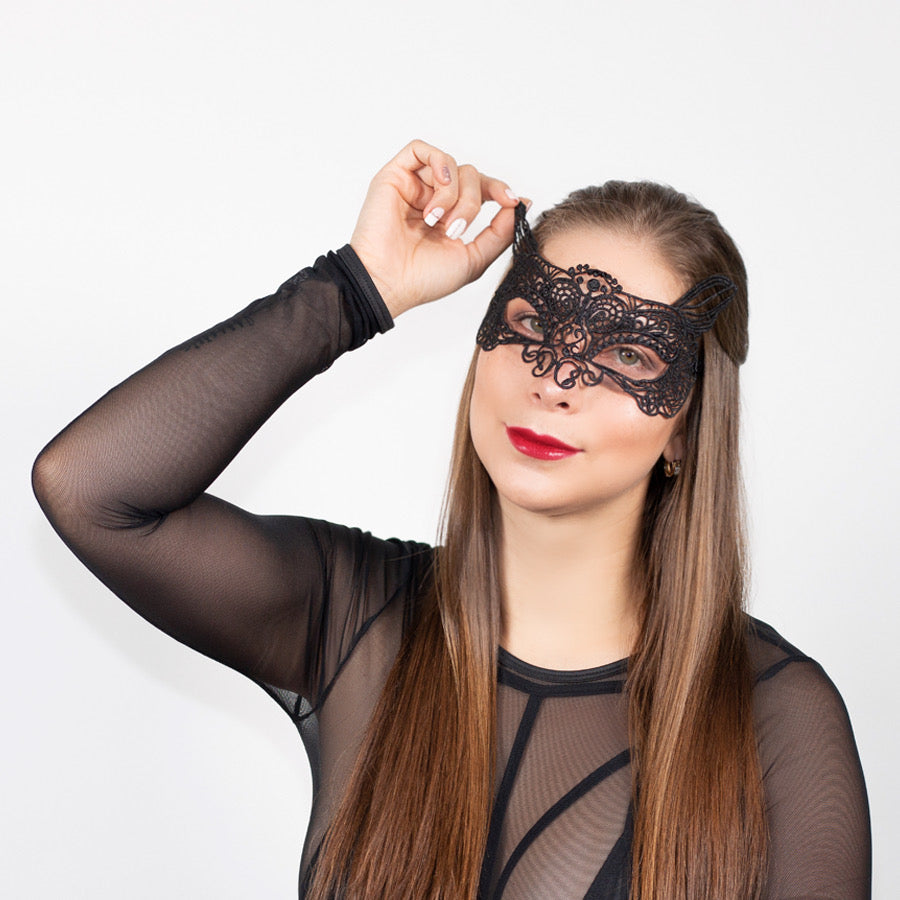 Antifaz tipo carnaval en arabescos elaborado en hilo rígido y forma de gato.