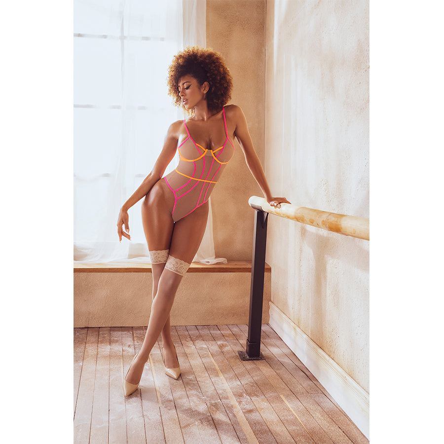 Cuerpo con aros y correas ajustables.  Caracteristicas:  Incluye: Cuerpo Tallas: S/M,L/XL Material: 96% Poliamida 4% Elastano Color: Desnudo/Neón   Cuidados: Lavar a mano o en el proceso de...
